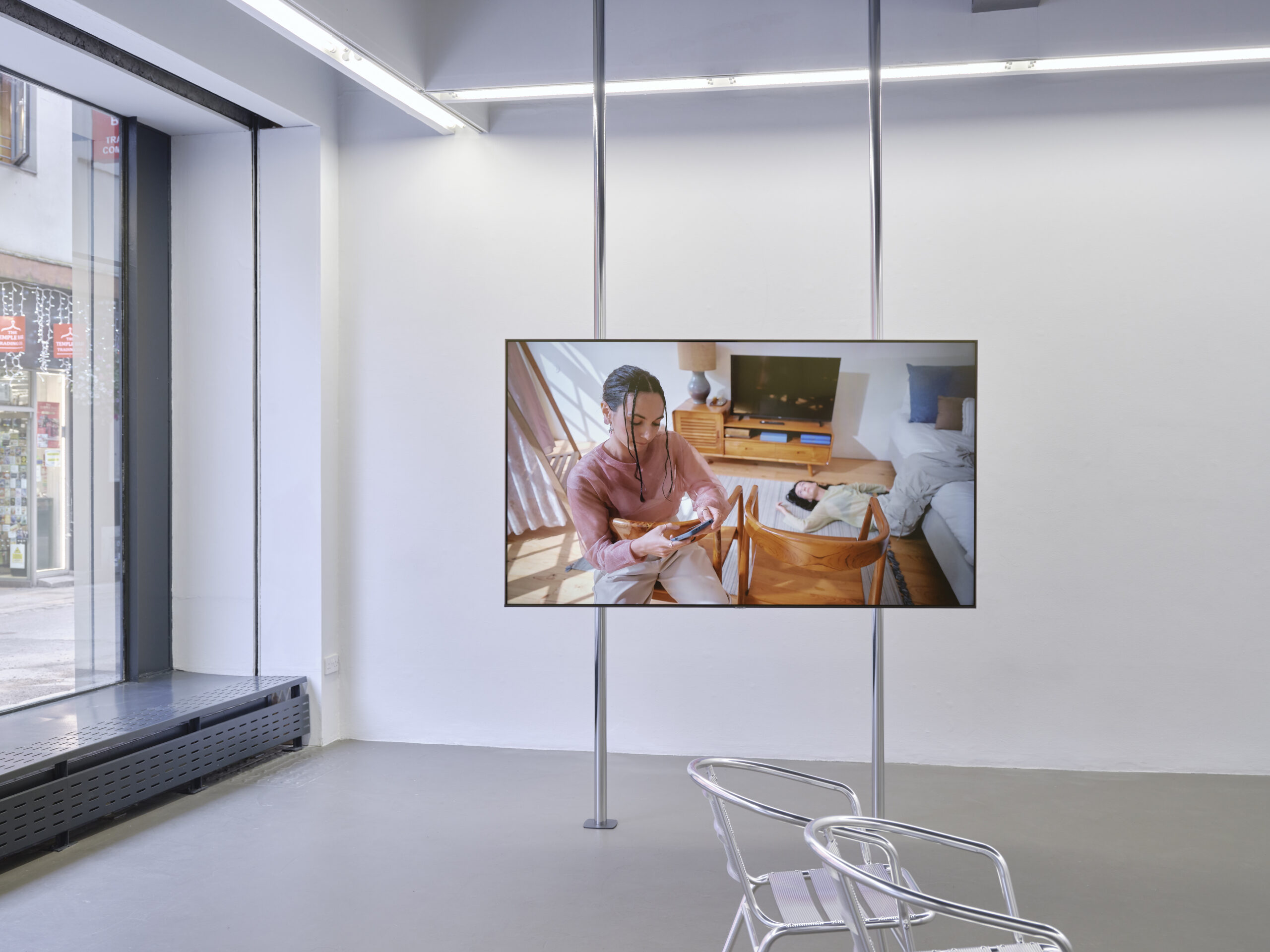 By pulling the four women in the film together, with particular focus given to footage of the busy streets, Approx 1 Second of A Sweet Kiss draws attention not only to the intimacy of their dialogue but also to a broader sense of rhythm, imagined, as Franco ‘Bifo’ Berardi puts it, not just as ‘vocal emissions or […] the sound of acoustic matter’ but also rhythm as ‘the vibration of the world’. In this context, touch becomes a connective tissue between the protagonist and the city. A long hug amid the backbeat of an ultra-quiet, ultra-manic drum set strengthens the disordered pattern of the work.